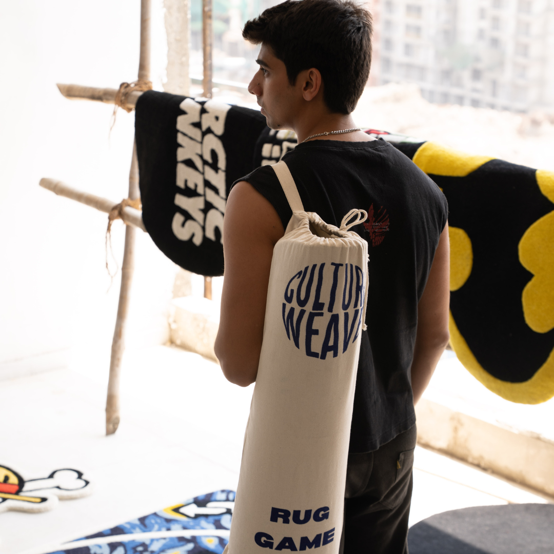 A functional collectible for every drop. The Essential Rug Sling – Edition 01 is a durable canvas carry bag with drawstring closure and shoulder strap—crafted to transport your rug in style.